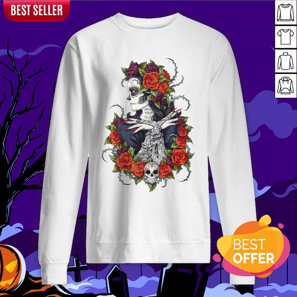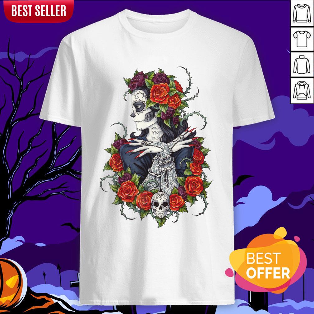 Сalavera Rose Sugar Skull Girl Day Of Dead Muertos Shirt