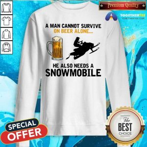 A Man Cannot Survive On Beer Alone He Needs A Snowmobile Shirt