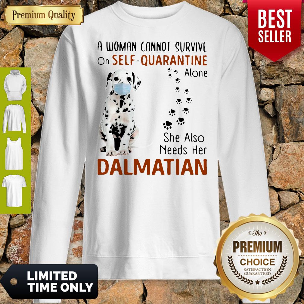 A Woman Cannot Survive On Self Quarantine Alone Dalmatian Covid-19 Shirt