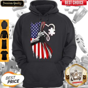 Autism Awareness Heart American Flag Veteran Independence Day Shirt