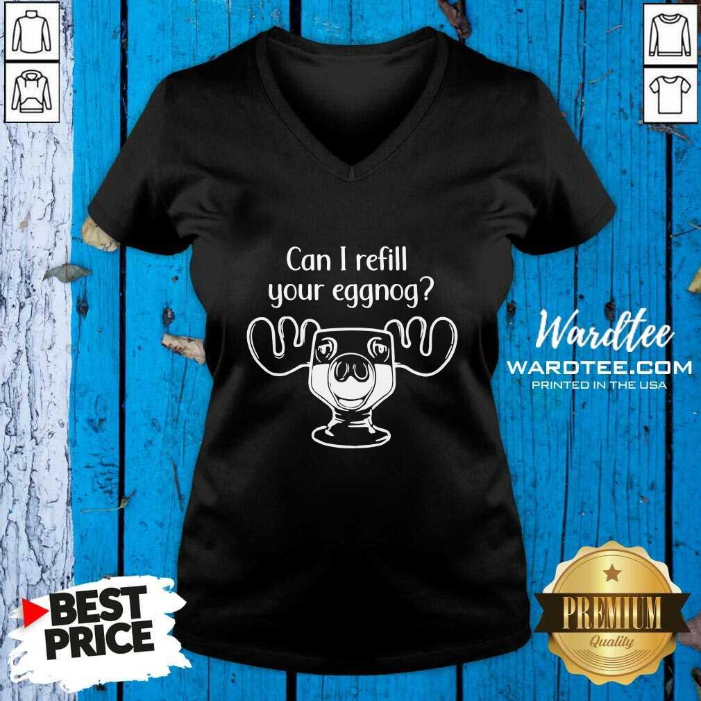 Awesome Can I Refill Your Eggnog Moose Glass Christmas Shirt