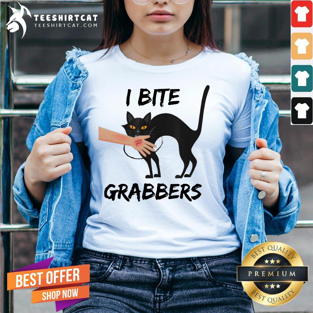 Awesome I Bite Grabbers Feminist Trump Black Cat Shirt