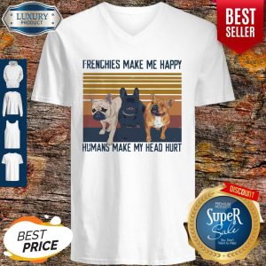 Awesome Pitbull Frenchies Make Me Happy Humans Make My Head Hurt Vintage Shirt