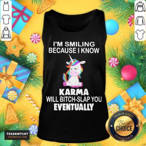 Awesome Unicorn I’M Smiling Because I Know Karma Will Bitch Slap You Eventually Shirt