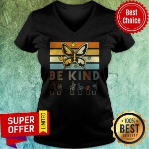 Awesome Vintage Sign Language Butterfly Autism Be Kind Lady Shirt