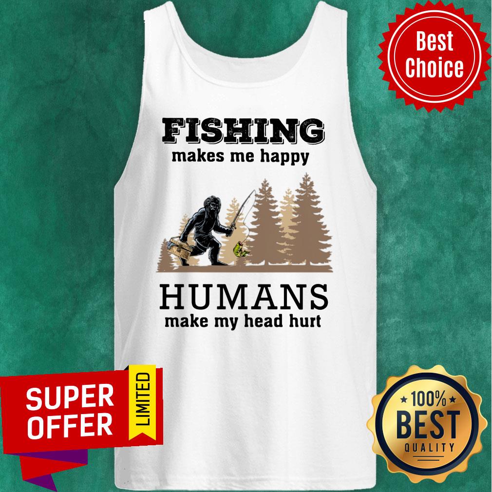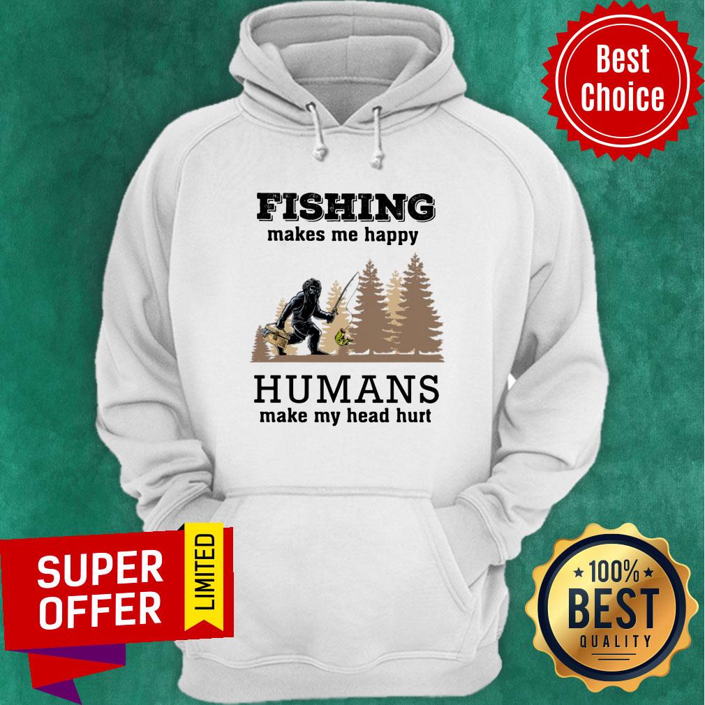 Bigfoot Fishing Make Me Happy Humans Make Me Head Hurt Shirt