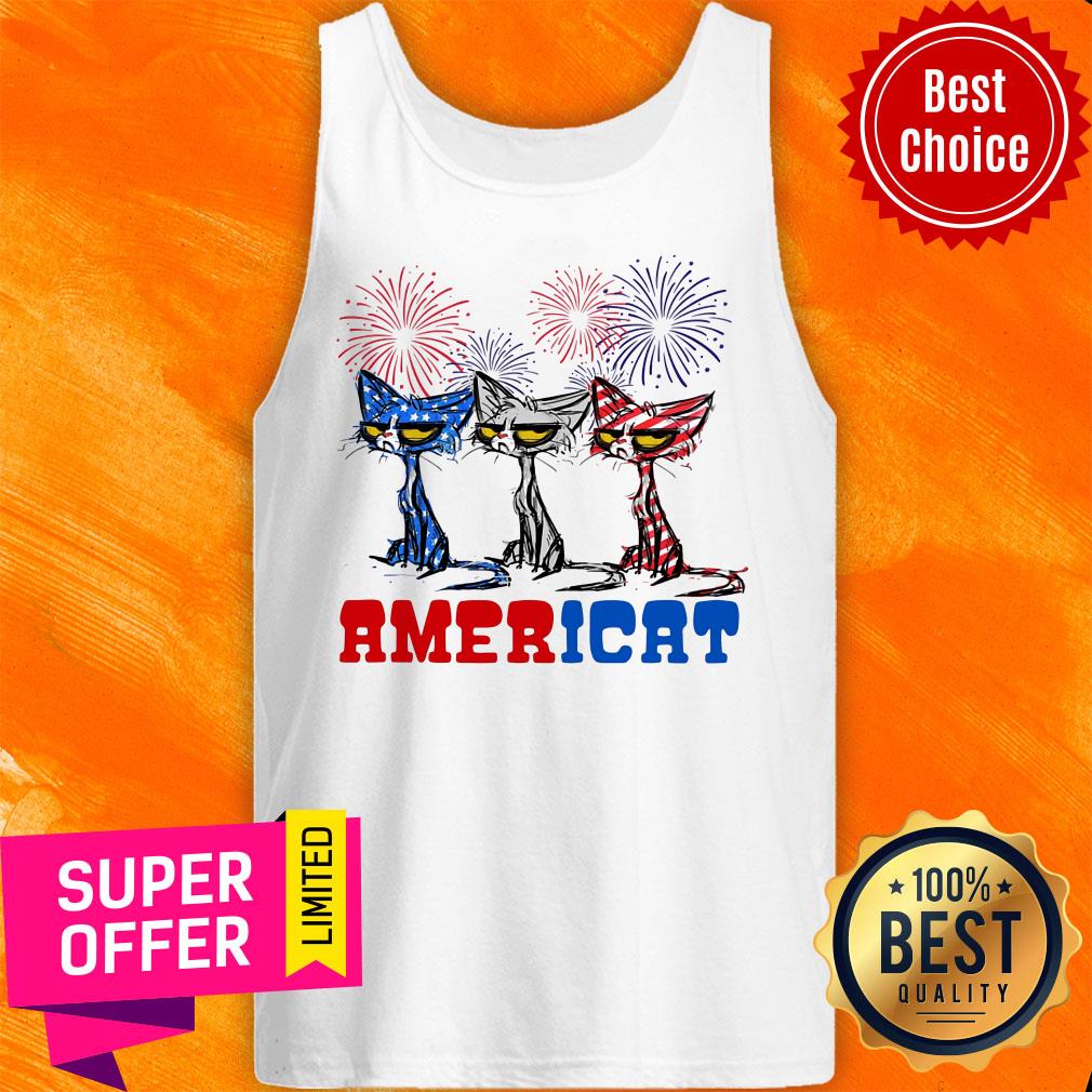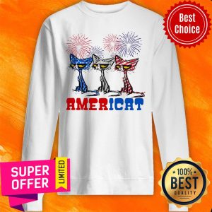 Black Cat Americat Independence Firework American Flag Shirt