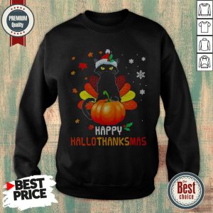Black Cat Christmas Happy Hallothanksmas Shirt
