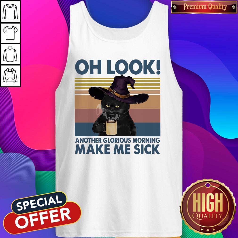 Black Cat Drink Coffee Oh Look Another Glorious Morning Makes Me Sick Vintage Shirt