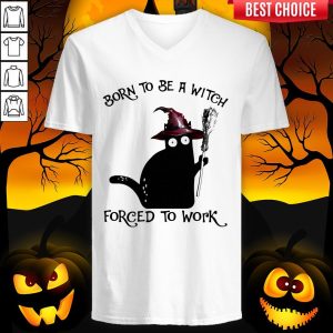 Born To Be A Witch Forced To Work Black Cat Halloween Shirt
