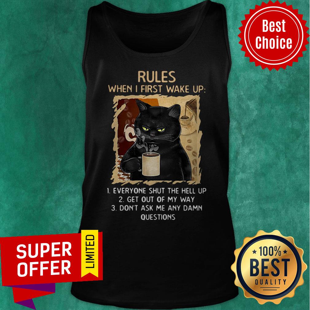 Cat Rules When I First Wake Up Everyone Shut The Hell Up Get Out My Way Don’t Ask Me Any Dam Questions Shirt