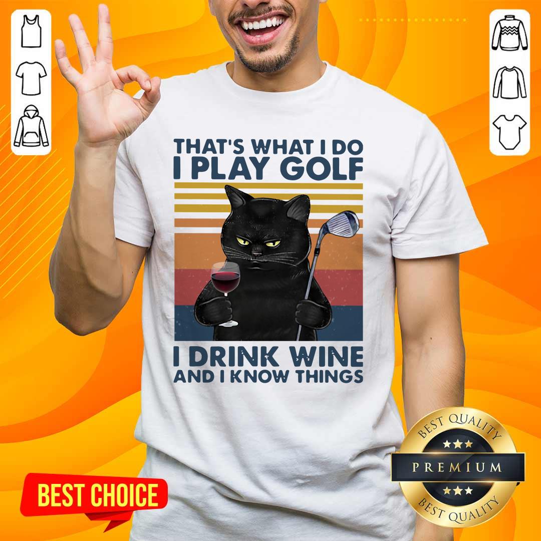 Explore more about the Cheated Black Cat I Play Golf I Drink Wine And I Know Things 7 Vintage Retro Shirt and make it yours today!