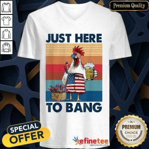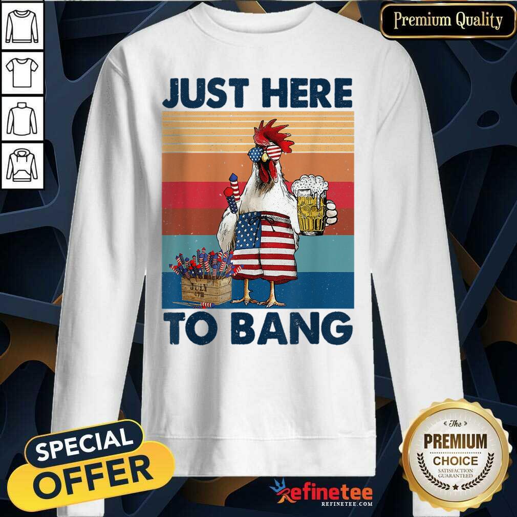 Chicken Beer Just Here To Bang USA Flag 4th Of July Vintage Shirt