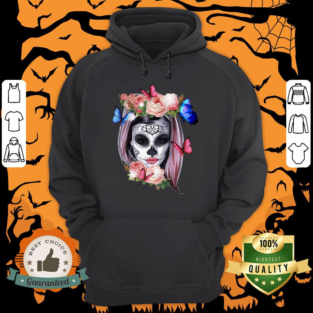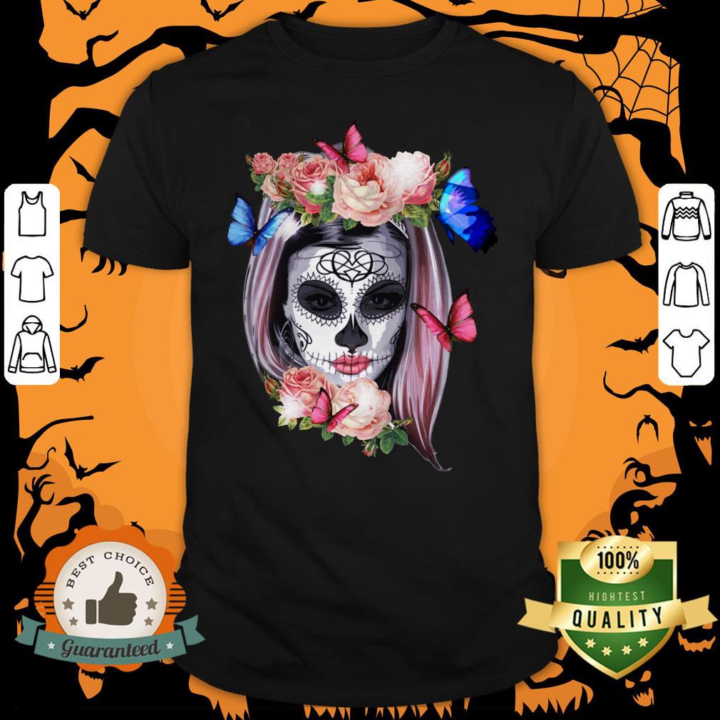 Colorful Sugar Skull Camila Buttlefly Girl Día De Los Muertos Halloween Shirt