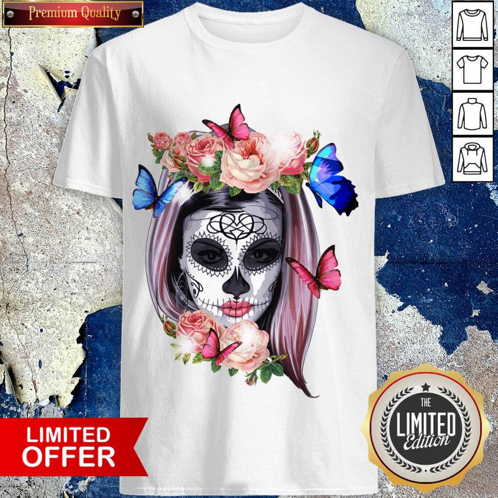 Colorful Sugar Skull Camila Buttlefly Girl Día De Los Muertos Halloween Shirt
