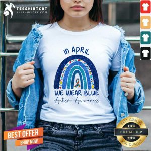 Cool Rainbow In April We Wear Blue Autism Awareness Shirt