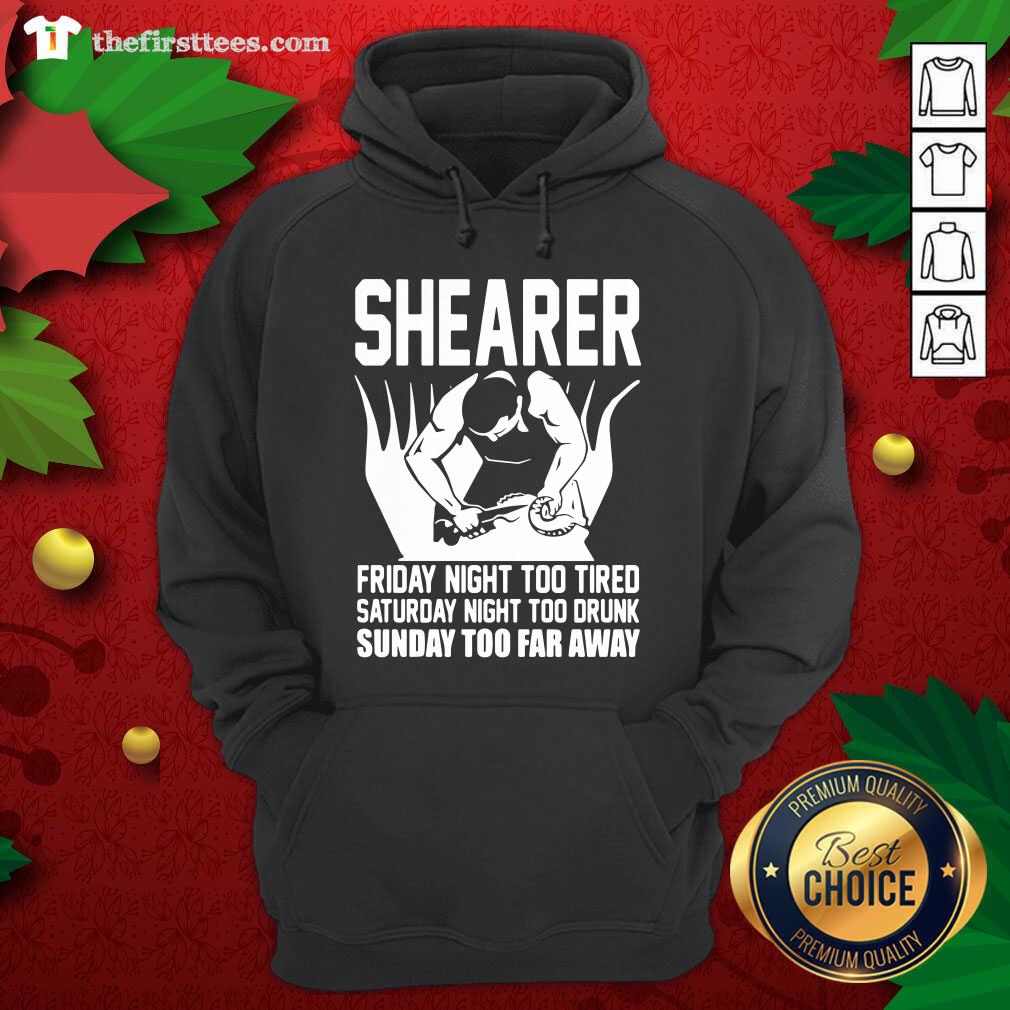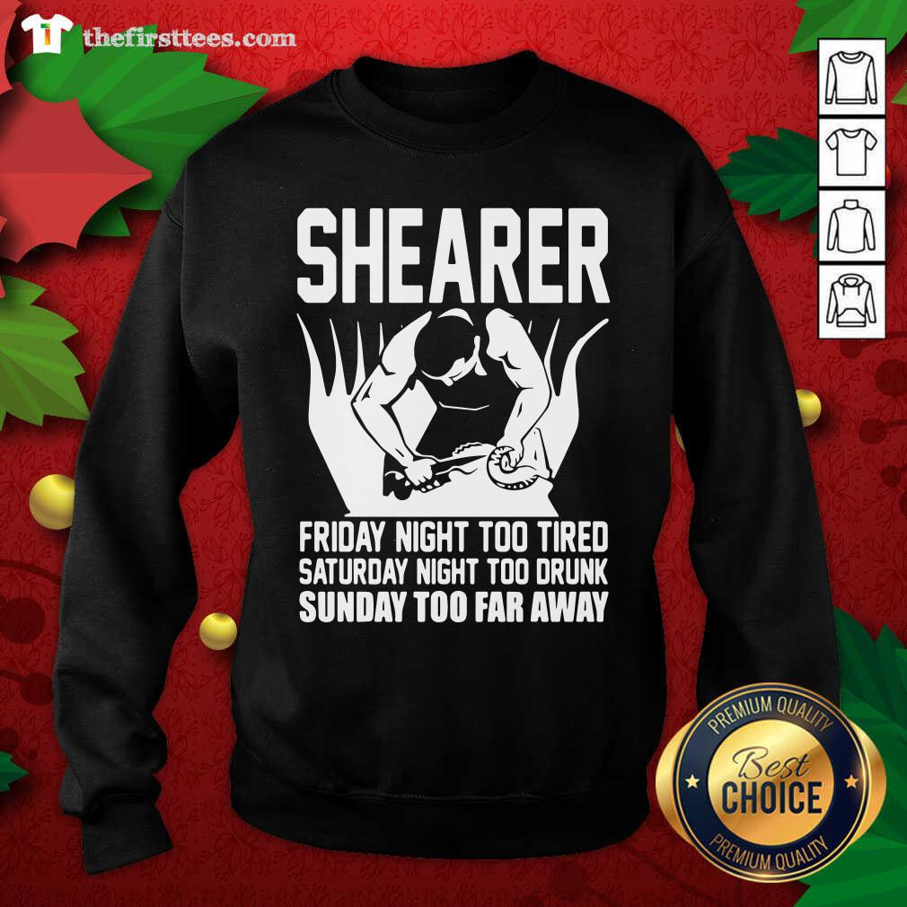 Cool Shearer Friday Night Too Tired Saturday Night Too Drunk Sunday Too Far Away Shirt
