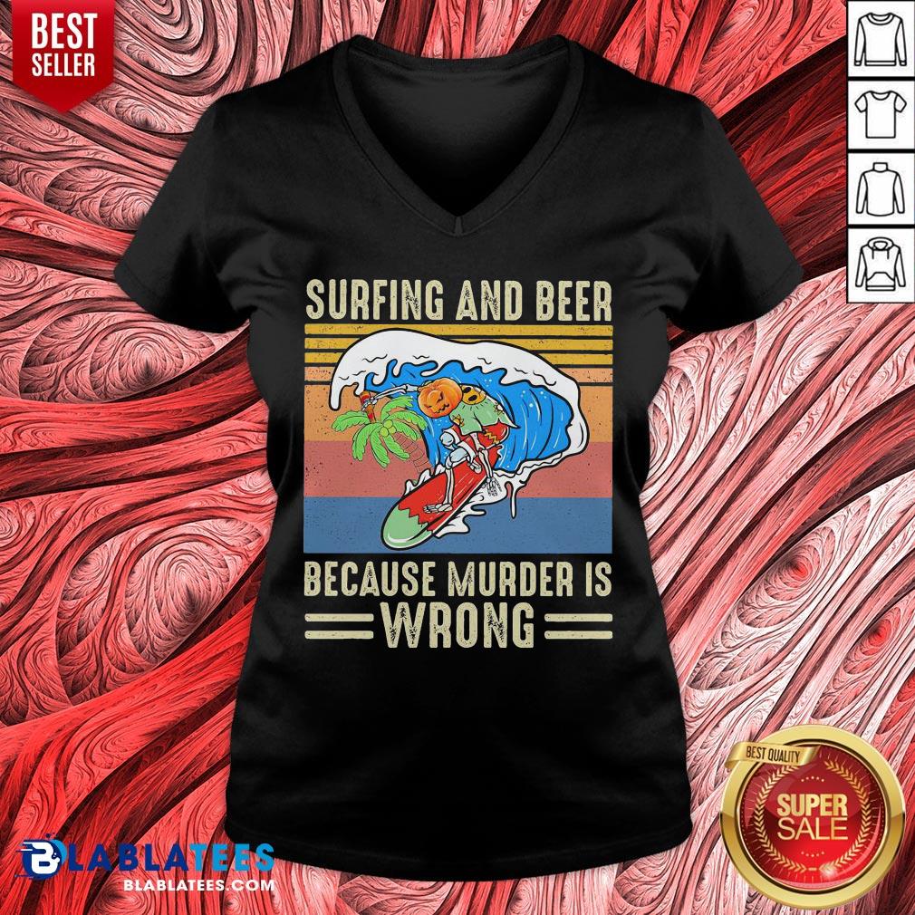 Cool Surfing And Beer Because Murder Is Wrong Vintage Retro Shirt