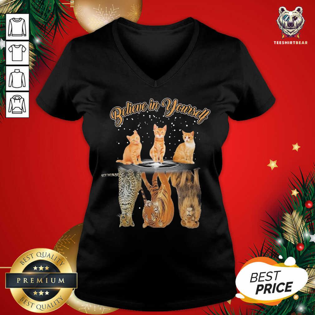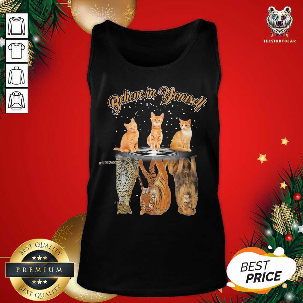 Cute Believe In Yourself Cat Reflection Water Tiger Shirt