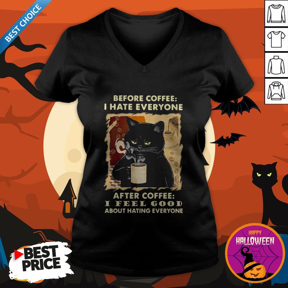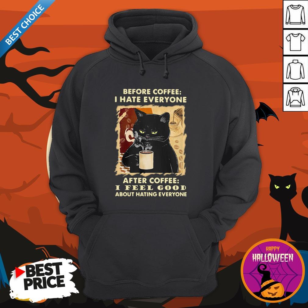Cute Black Cat Before Coffee Hate Everyone Shirt