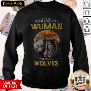 Cute Never Under Estimate A Woman Who Loves Wolves Sunset Shirt