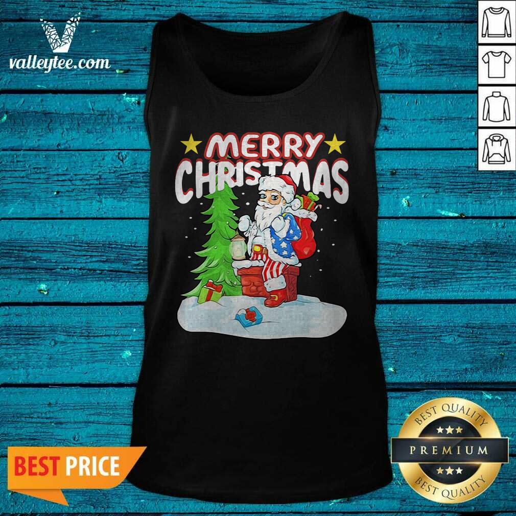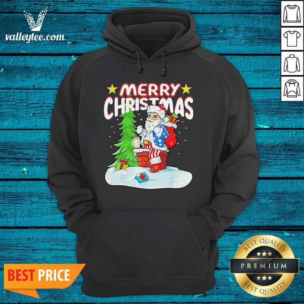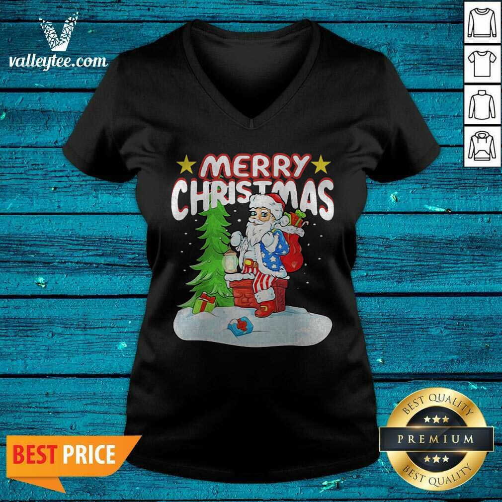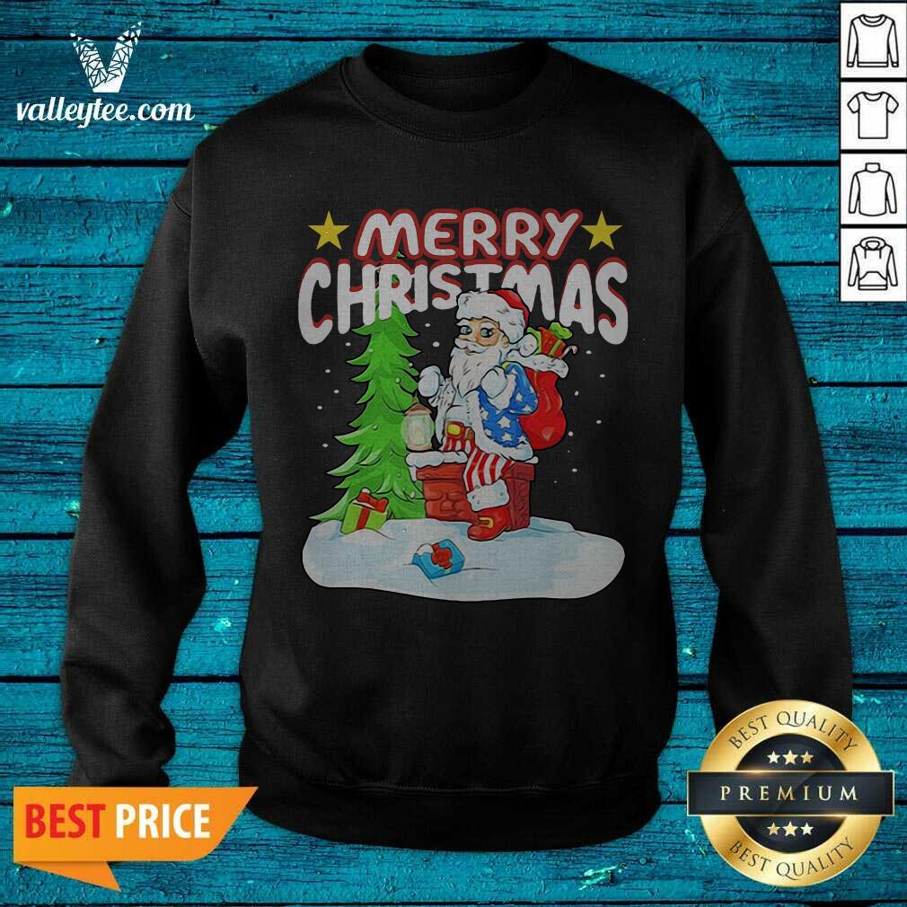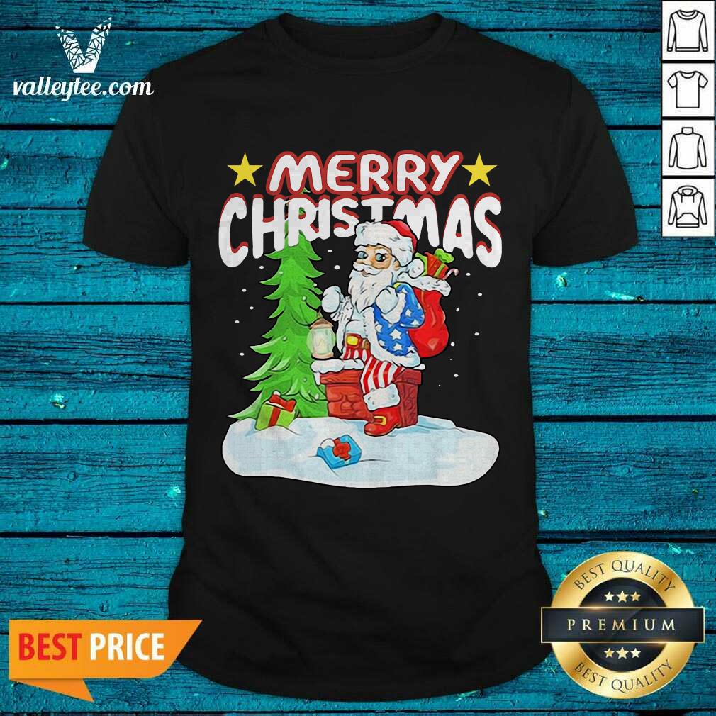 Cute Patriotic American Flag Santa Claus Chimney Christmas Shirt