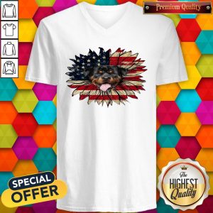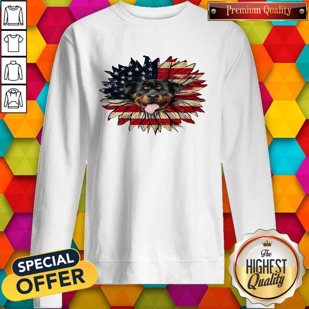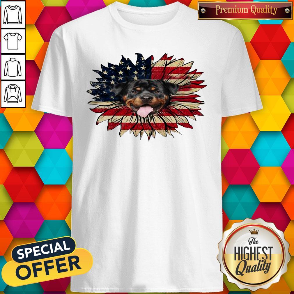 Cute Rottweiler Dog Sunflower American Flag Shirt