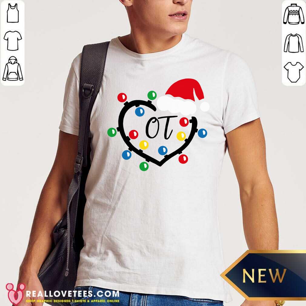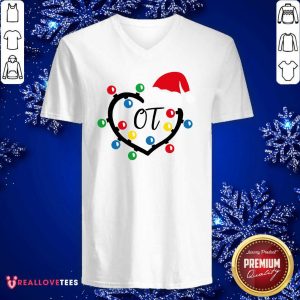 Cute Santa Hat Heart OT Merry Christmas Light Shirt