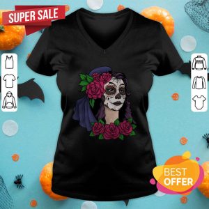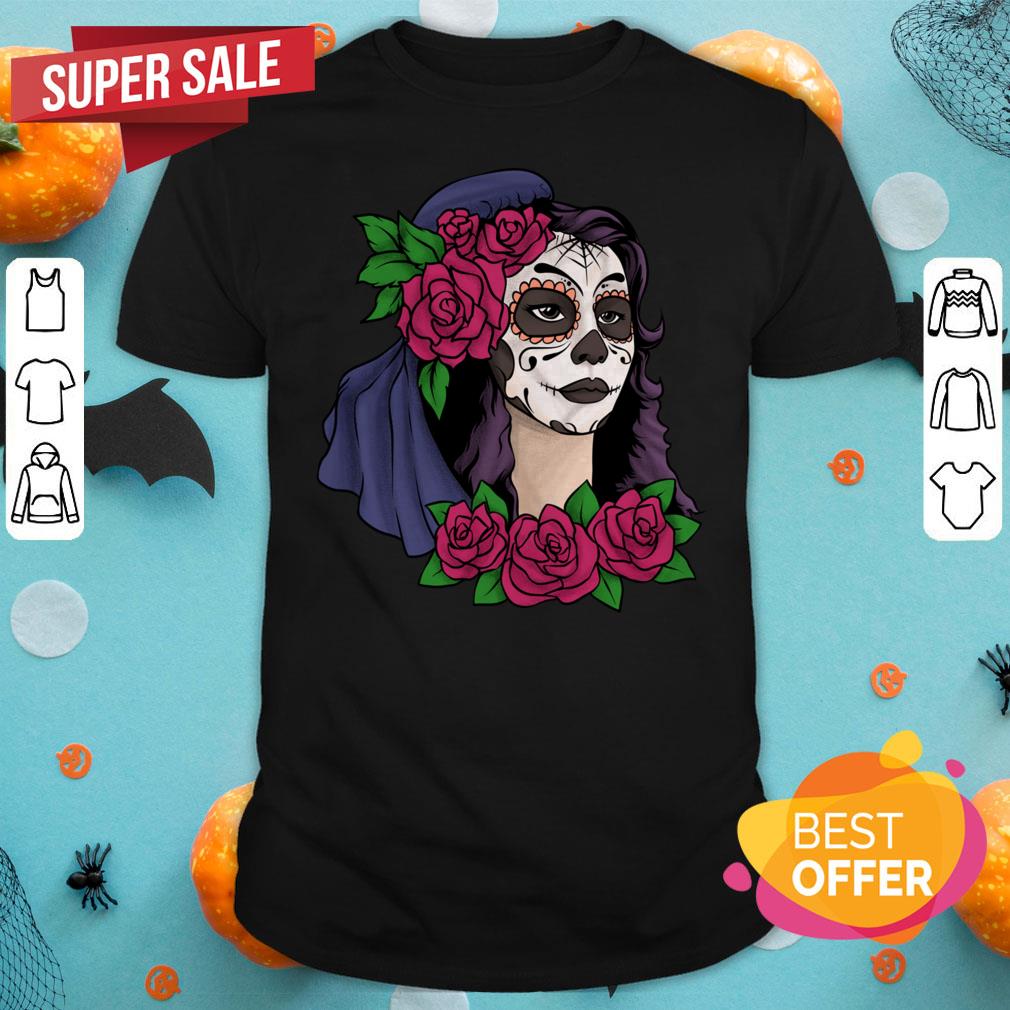 Day Of The Dead Sugar Skull Girl With Flowers Shirt