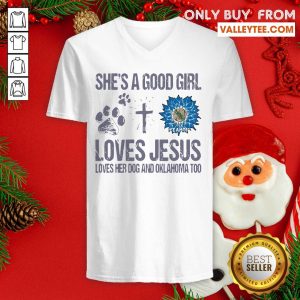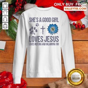 Delicate Shes A Good Girl Loves Jesus Loves Her Dog And Oklahoma Too Sunflowers Shirt