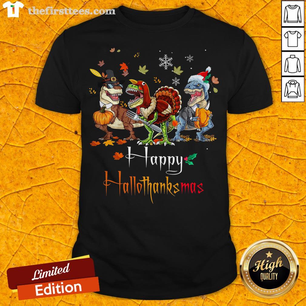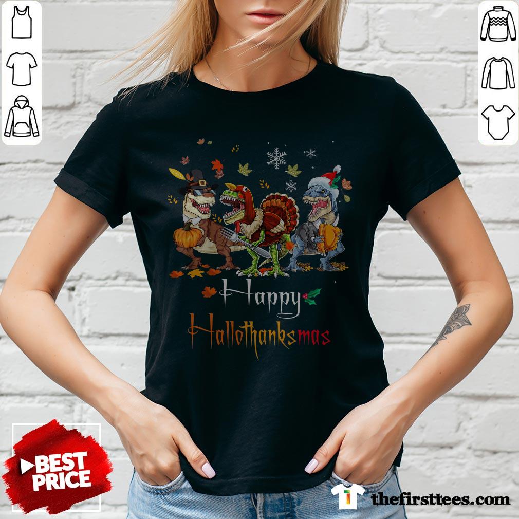 Dino T-rex Happy HalloThanksMas Halloween Christmas Shirt
