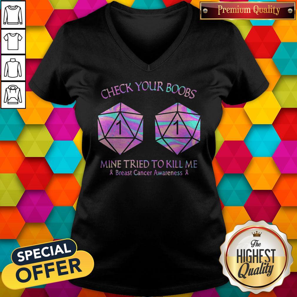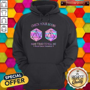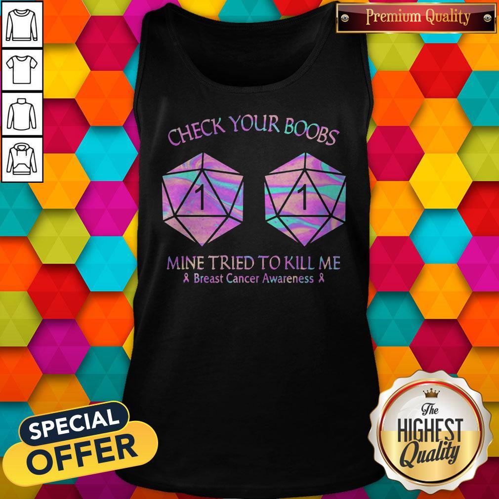 Dungeon Check Your Boobs Mine Tried To Kill Me Breast Cancer Awareness Color Shirt