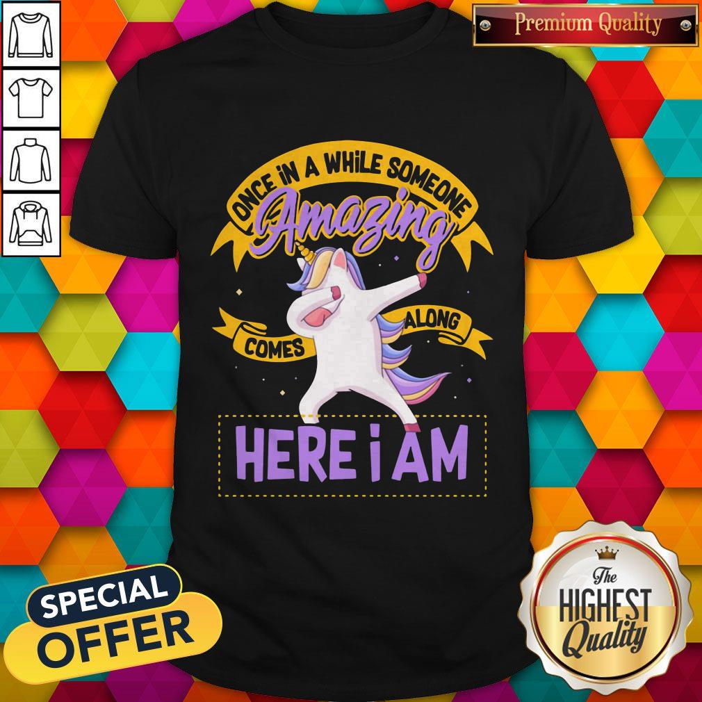 Excellent Unicorn Once In A While Someone Amazing Comes Along Here I Am Shirt