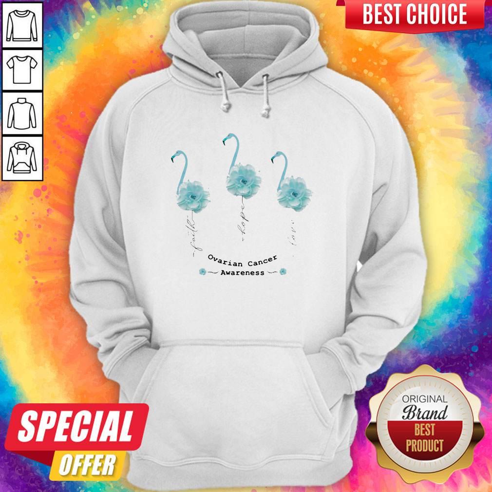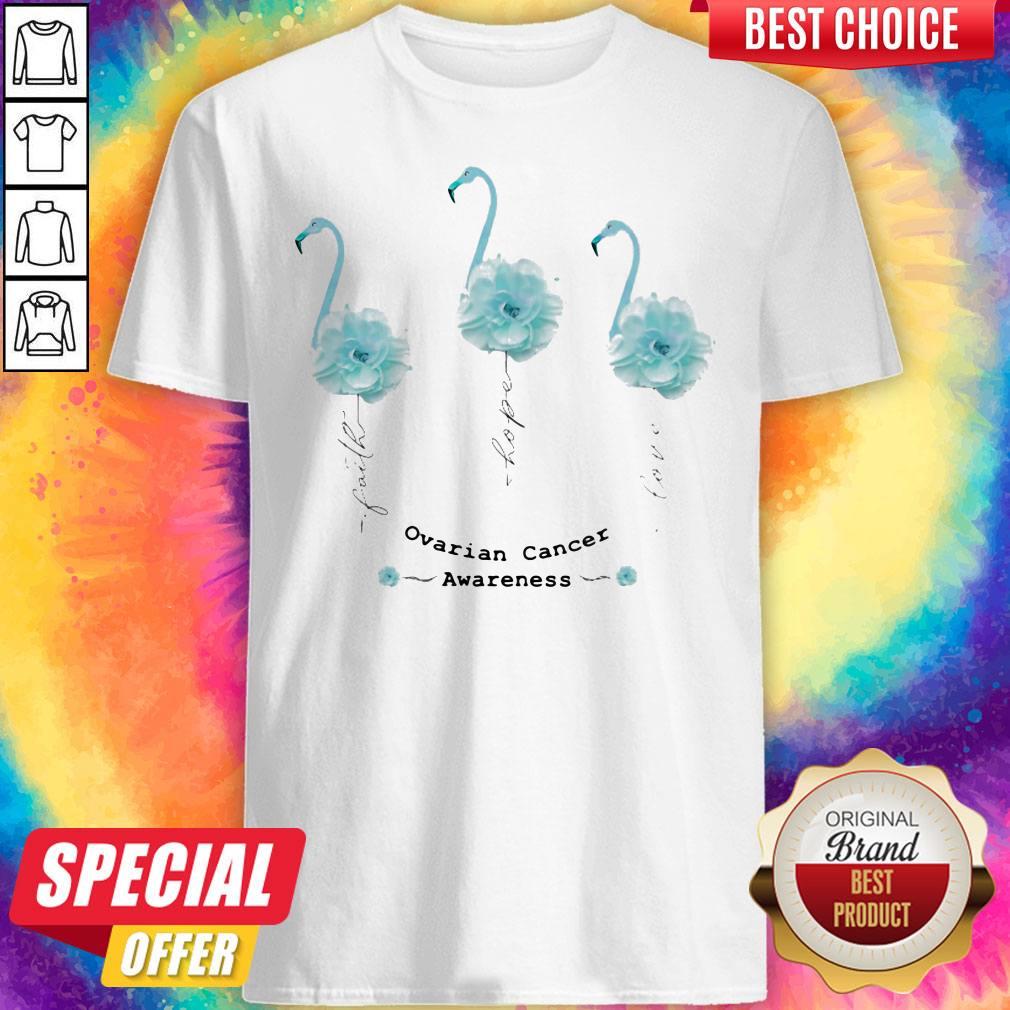 Faith Hope Love Ovarian Cancer Awareness Flamingo Flower Shirt