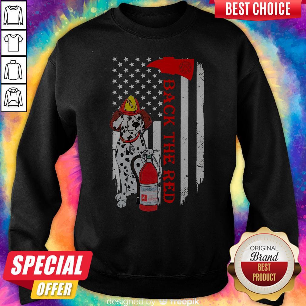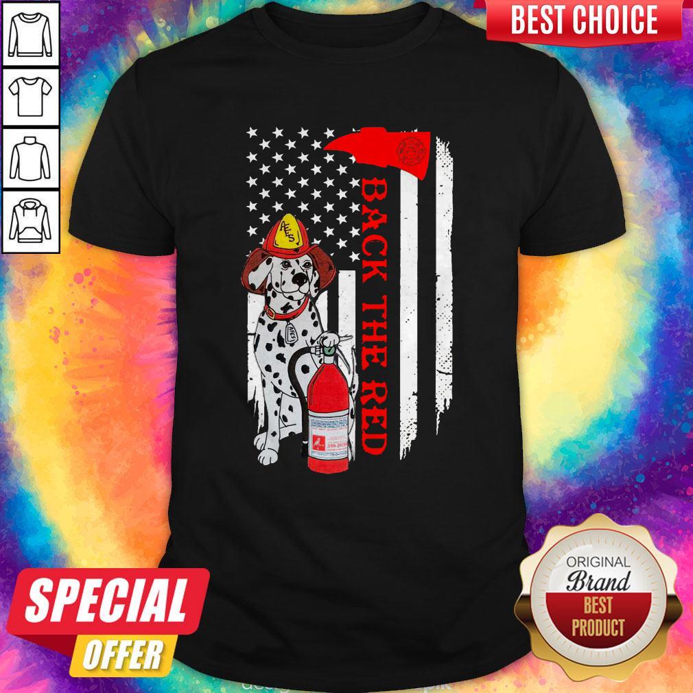 Firefighter Dog Back The Red American Flag Shirt