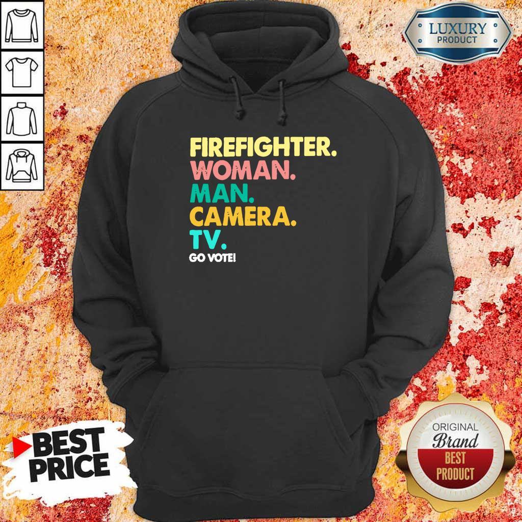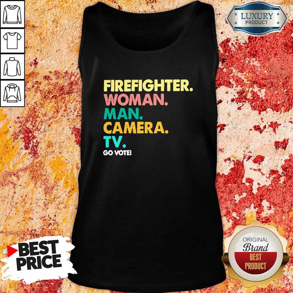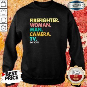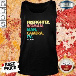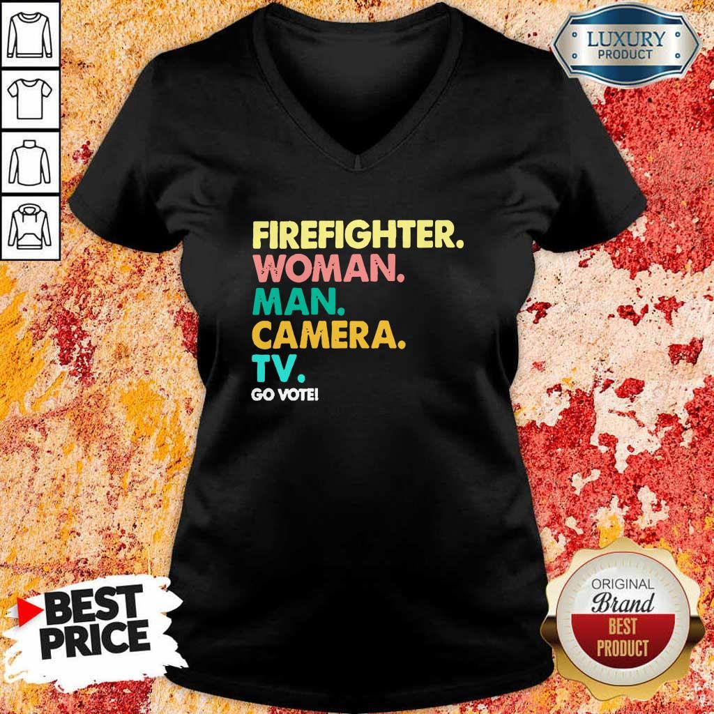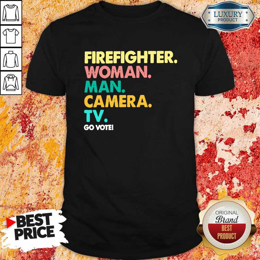 Explore more about the Firefighter Woman Man Camera TV Go Vote Shirt and make it yours today!