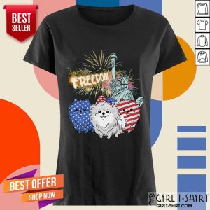 Freedom Dog Pomeranian Statue Of Liberty USA Flag Shirt