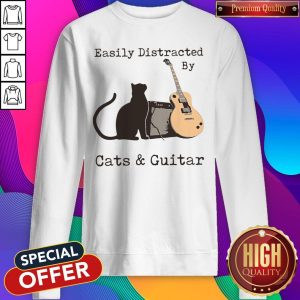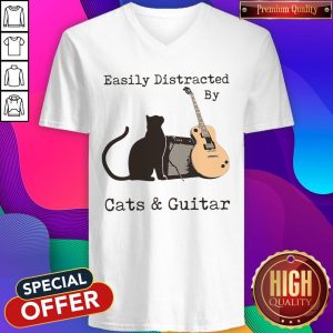 Funny Easily Distracted By Cats And Guitar Shirt