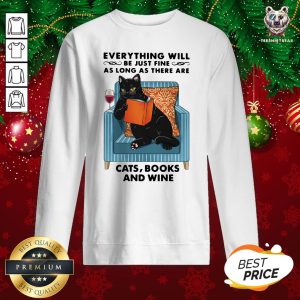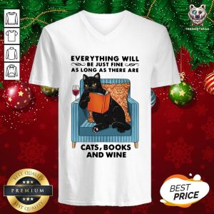 Funny Everything Will Be Just Fine As Long As There Are Cats Books And Wine Shirt