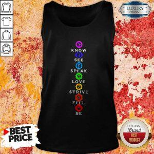 Explore more about the Funny Know See Speak Love Strive Feel Be Shirt and make it yours today!