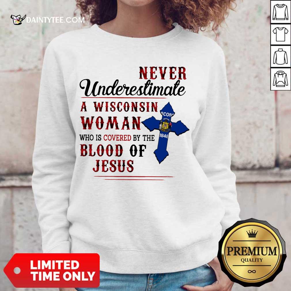 Funny Never Underestimate A Wisconsin Blood Of Jesus Shirt, Sweater, Ladies Tee, Hoodie And Long Sleeved