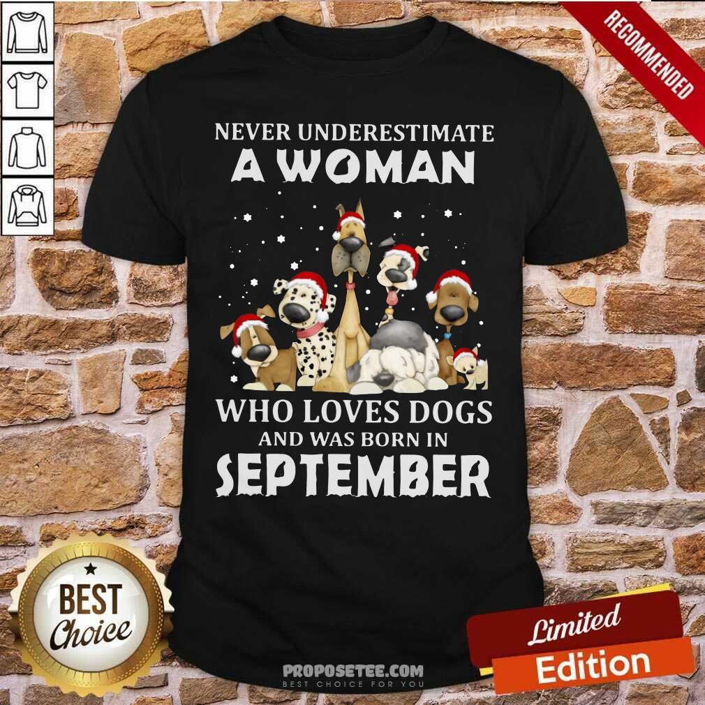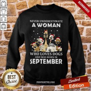 Funny Never Underestimate A Woman Who Loves Dogs And Was Born In September Christmas Shirt