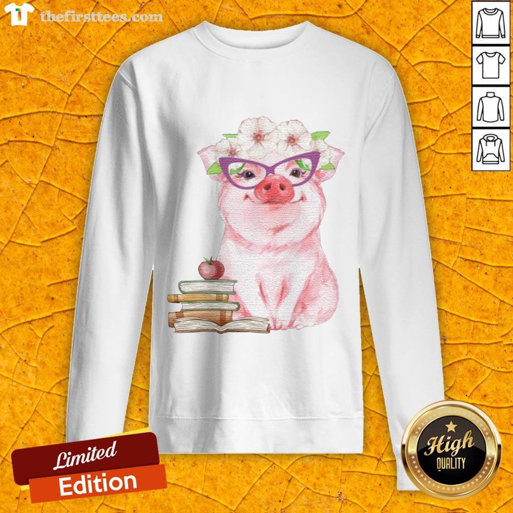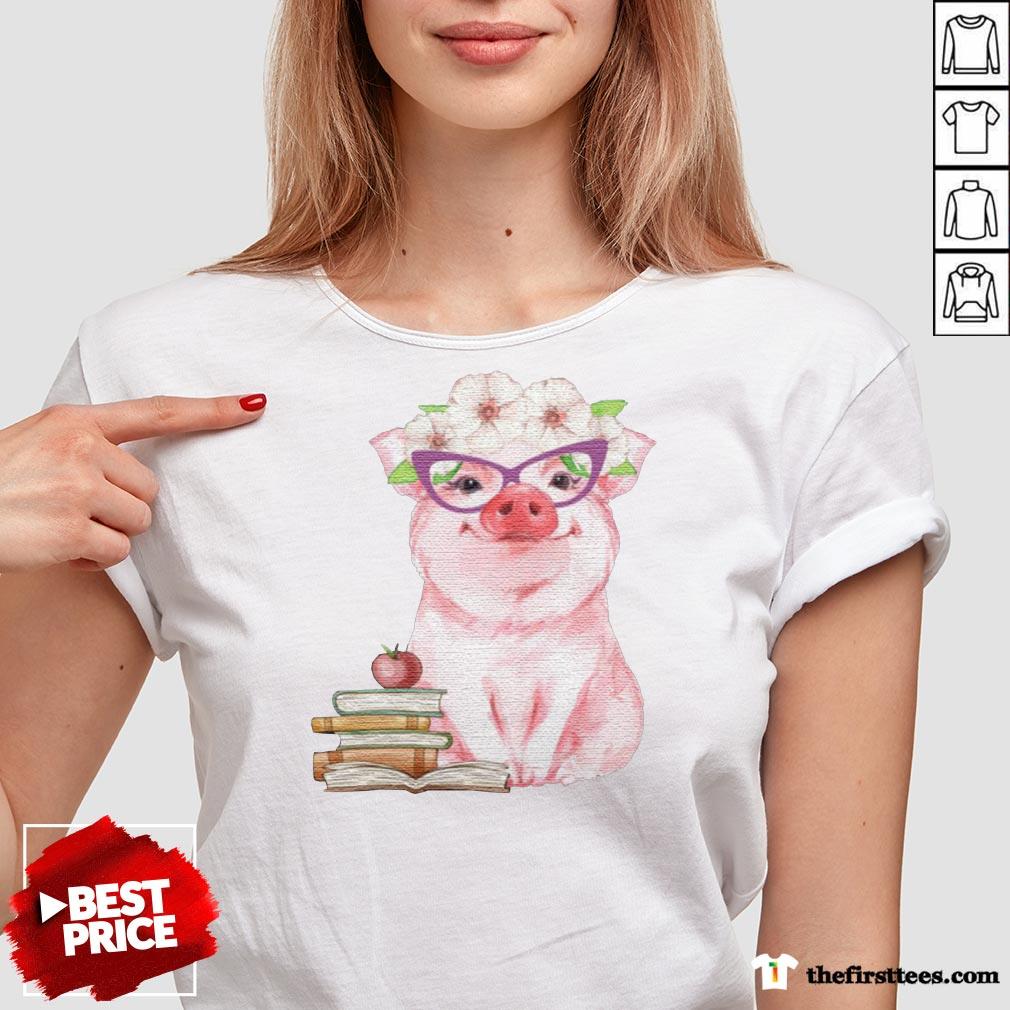 Funny Pig Teachers Books Apple Shirt
