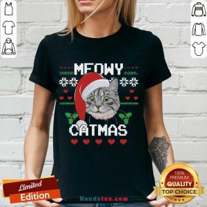 Explore more about the Funny Santa Cat Meowy Catmas Ugly Christmas Shirt and make it yours today!
