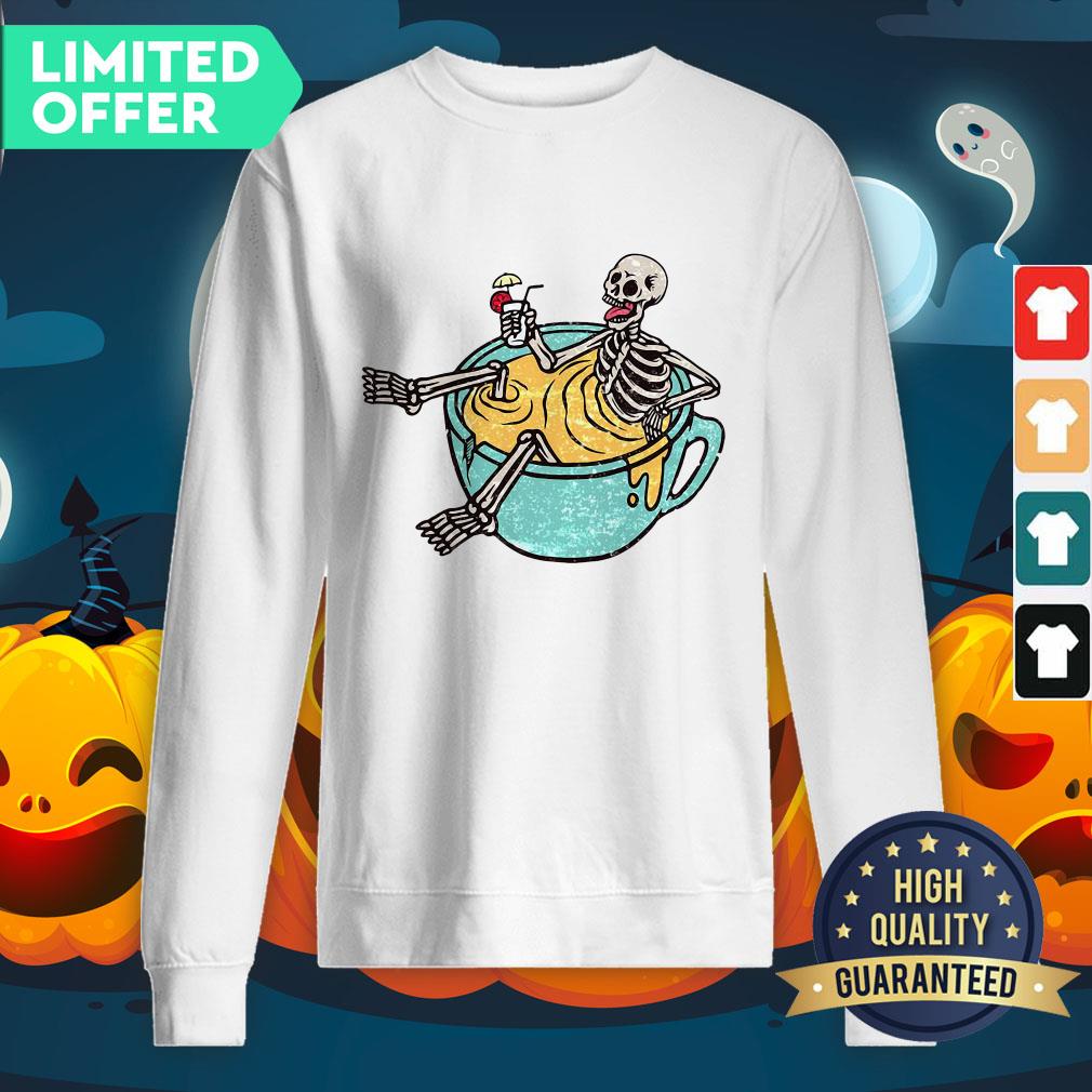 Funny Skeleton Drinking Coffee Dia De Los Muertos Day Dead Halloween Shirt
