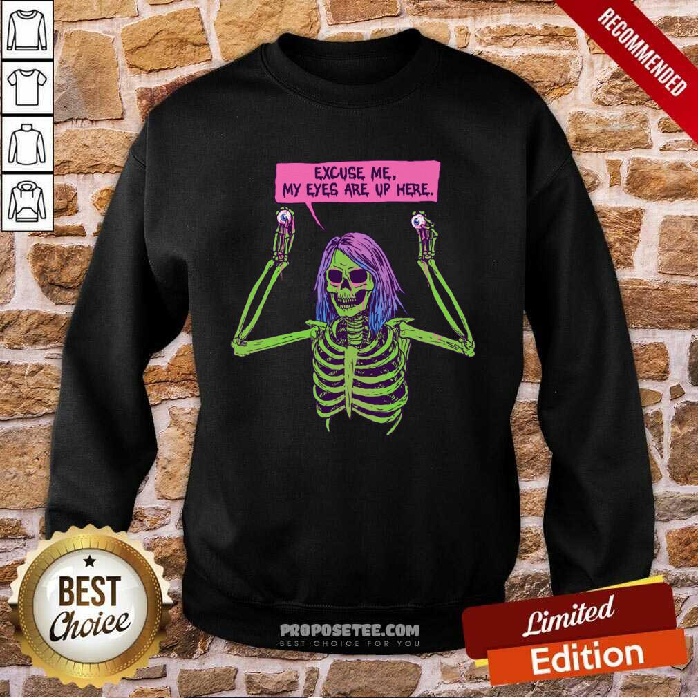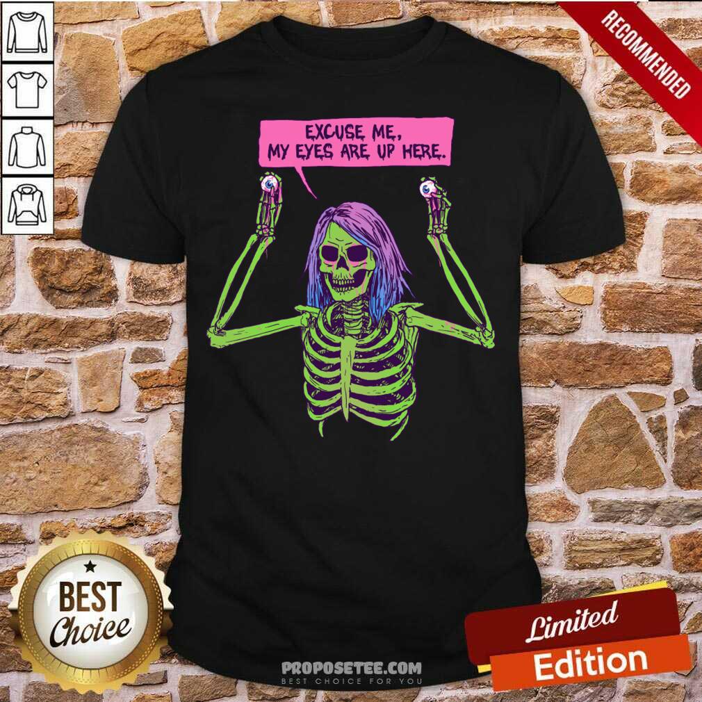 Funny Skeleton Excuse Me My Eyes Are Up Here Shirt