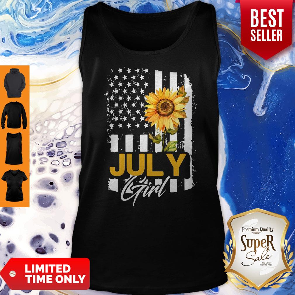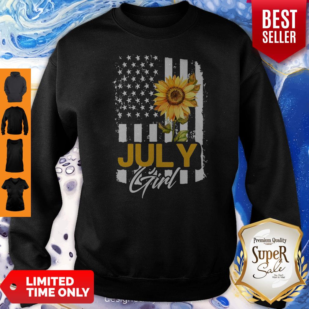 Funny Sunflowers American Flag July Girl Shirt