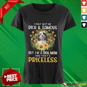 Explore more about the Funny Tibetan Terrier I May Not Be Rich And Famous But I Am A Dog Mom And That Is Priceless Shirt and make it yours today!