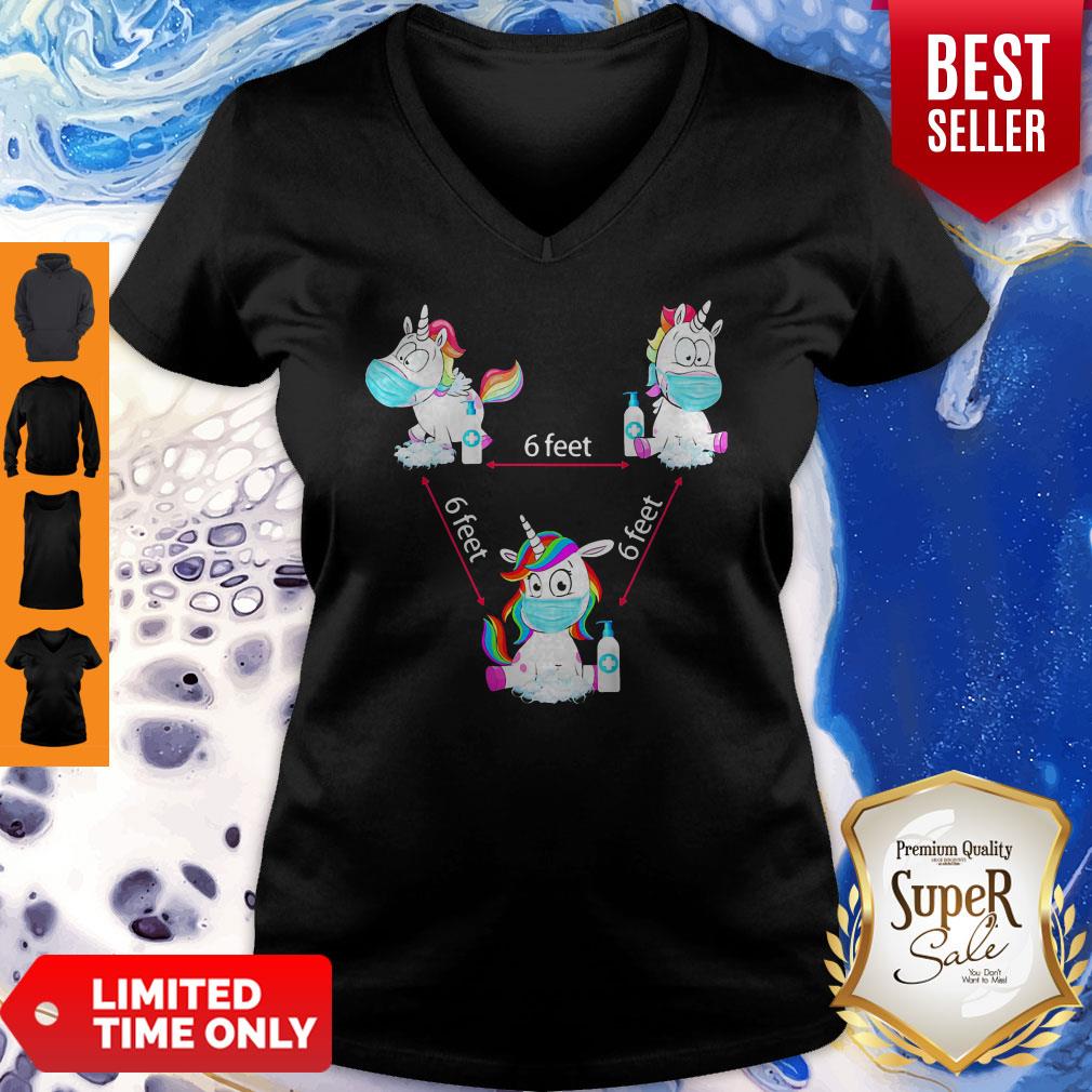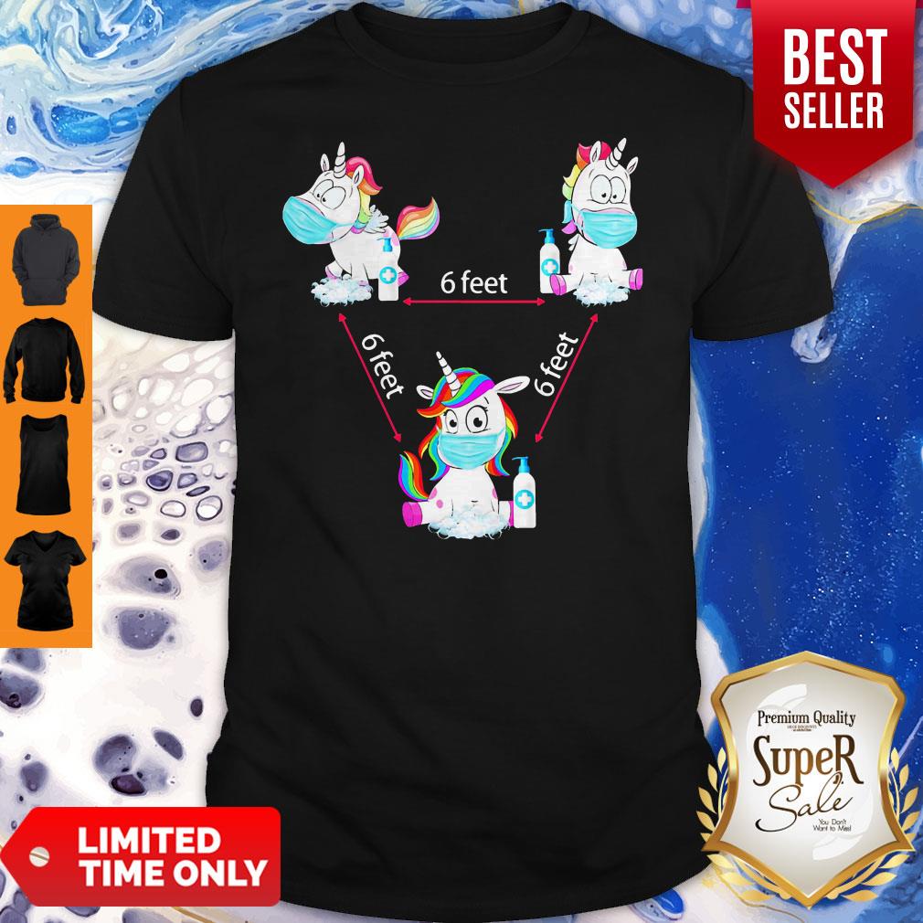 Funny Unicorns Wearing Mask And Washing Hands 6 Feet Covid19 Shirt