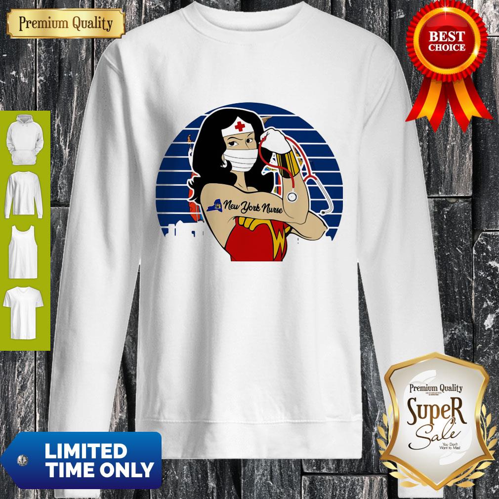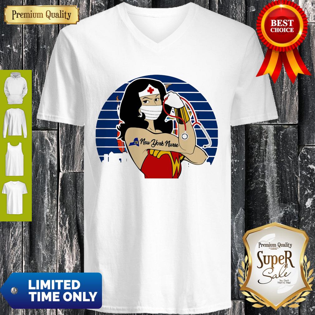Funny Vintage Wonder Woman Tattoos New York Nurse Covid-19 Shirt